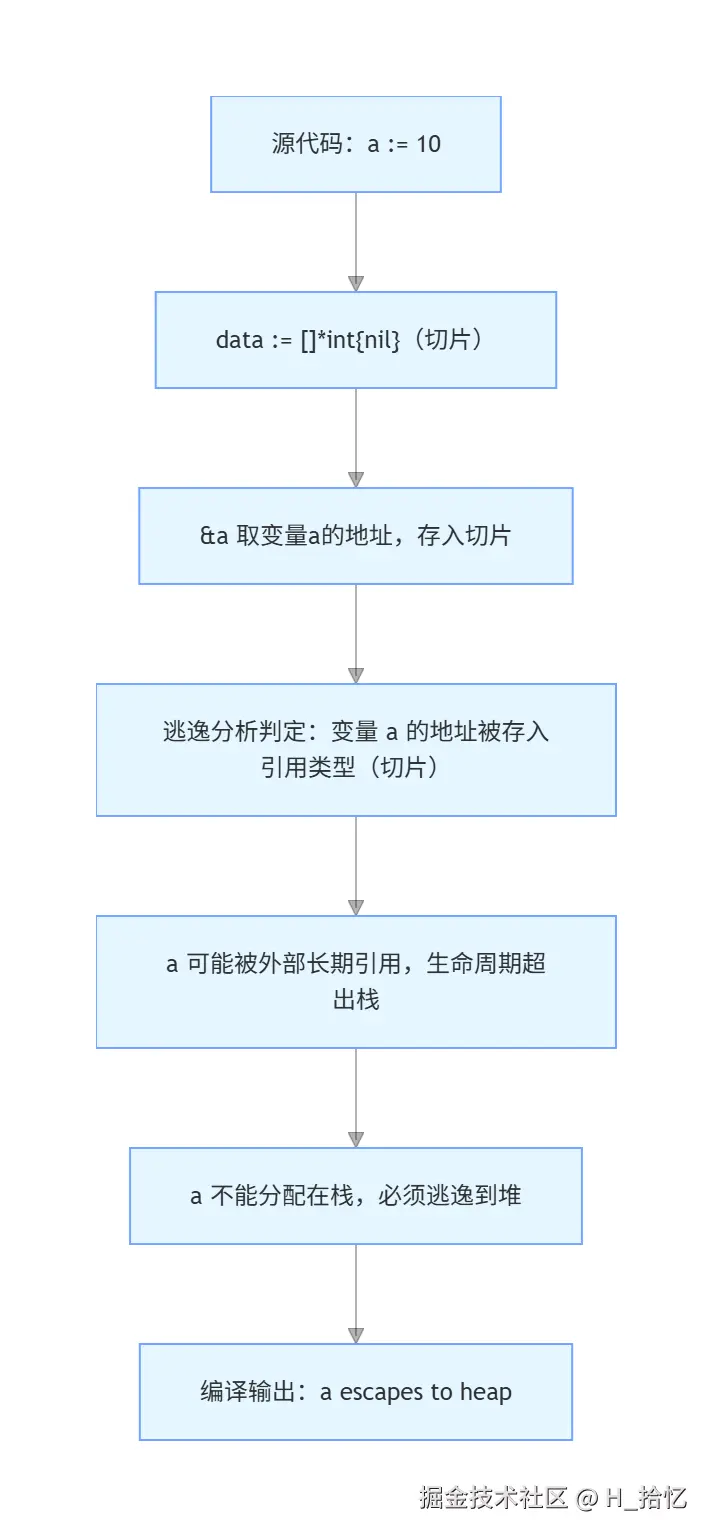 逃逸的普遍规则就是如果变量需要使用堆空间.就应该进行逃逸.实际上Go语言并不仅把逃逸的规则定的如此泛泛.Go语言中有许多场景具备出现逃逸的现象.