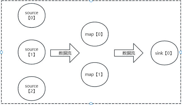 如图所示:source的并行度是3,map的并行度是2,sink的并行度是1。
