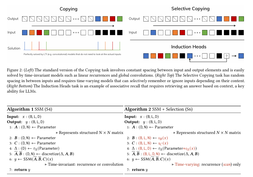 S4实现了理论上的线性时间与高效并行训练,但仍是线性时不变(LTI)系统,缺乏内容感知能力。