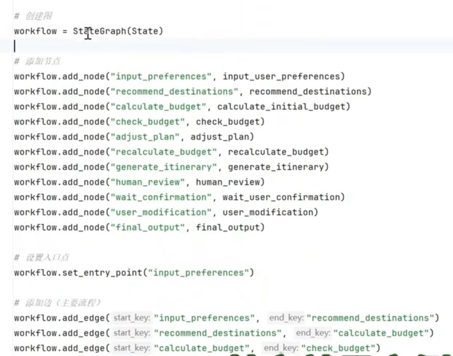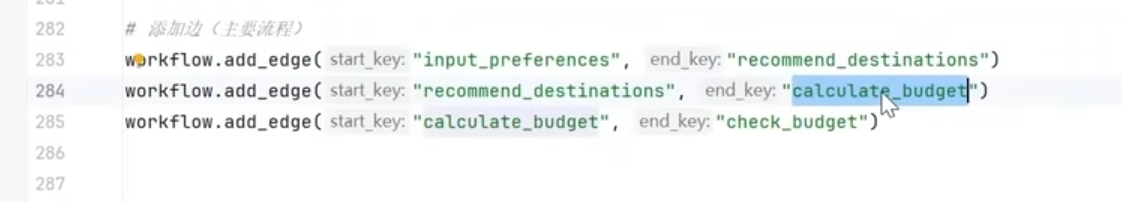下面就是添加边过程,你也可以看成是一个构建图的过程。这个流程很清晰,如果我们实现从节点到节点的链接,实际上也就是构成了一个链条