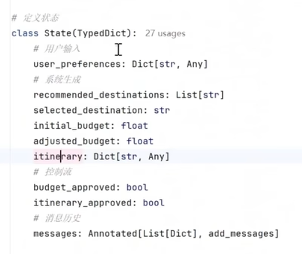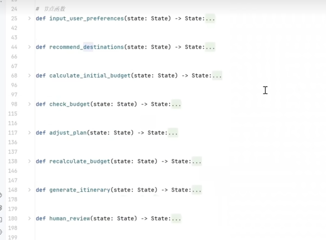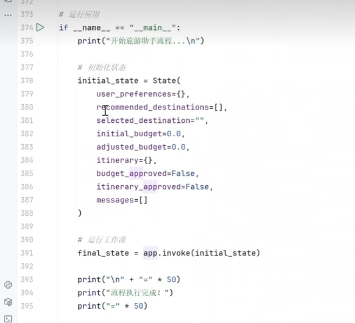 上面流程其实使用langchain也可以实现。但是下面的代码才是体现langgraph的优势,也就是条件边。我们可以根据条件边来选择接下来的路径是执行循环还是说继续向后执行流程