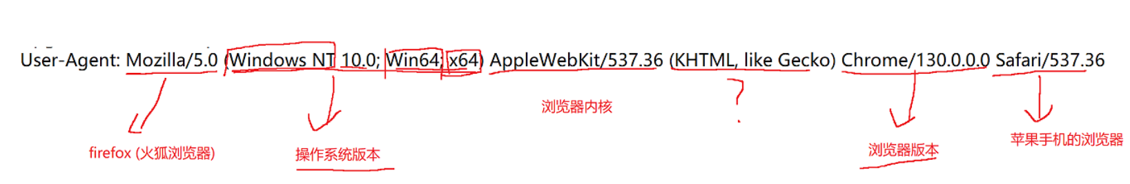 User-Agent里面表示了用户使用的设备的浏览器和操作系统的情况。