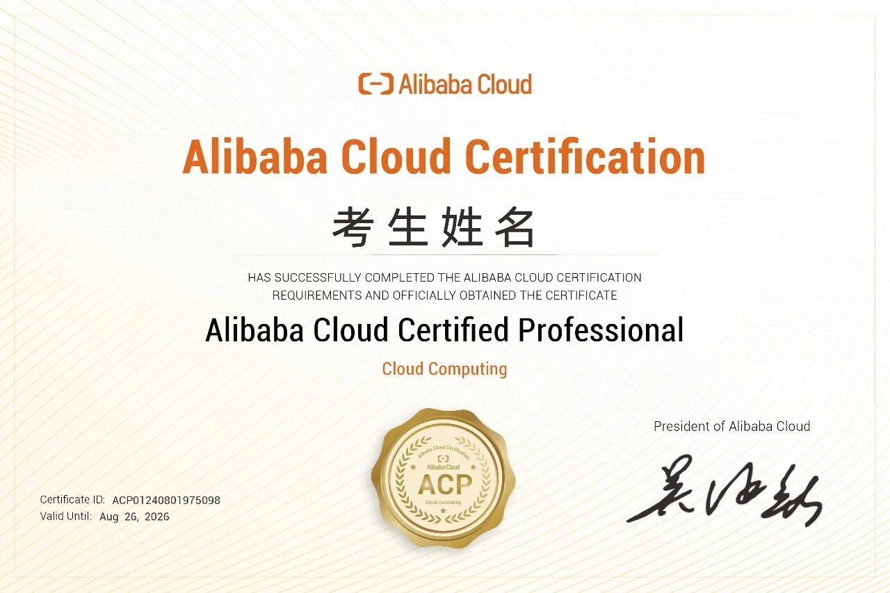 - 阿里云 ACP 是阿里云官方推出的中级认证,它面向 IT 架构师、开发及运维人员,分云计算、大数据、云原生、云安全等方向,考试为 120 分钟机考(满分 100 分,80 分及格),证书有效期 2 年。