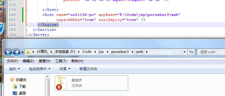 <Host name="oct1158-pc" appBase="F:\Code\jsp\purasbar3\web"