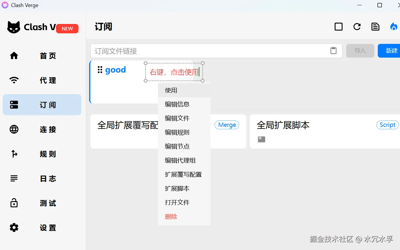 然后,点击上图的保存按钮,再右键使用之,就订阅好了