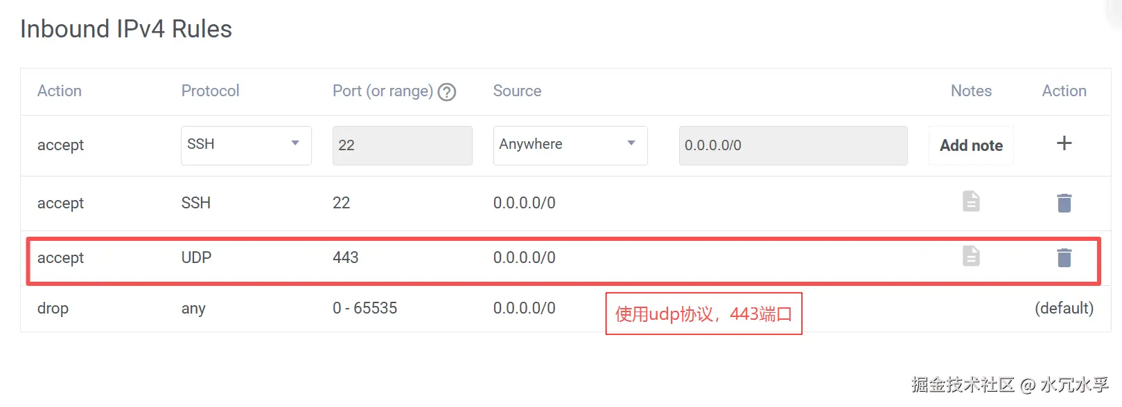 使用udp搭配443端口(要放开哦,要不然无法连接VPN服务)