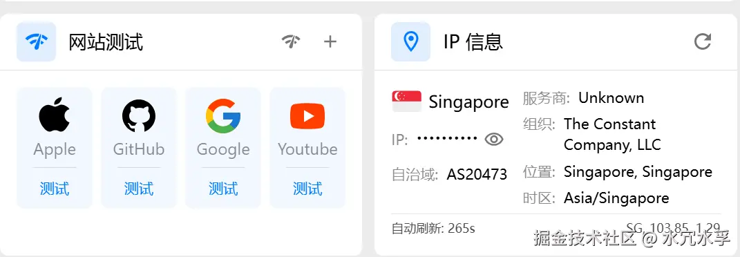 在clash里面也能看到我们的ip已经变成了新加坡了