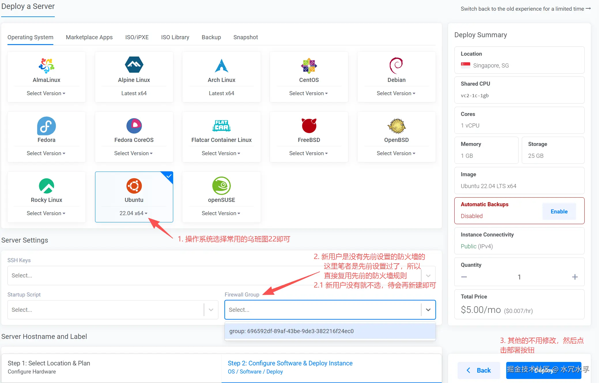第二步------选择操作系统(防火墙规则【相当于云服务器的安全组概念】)