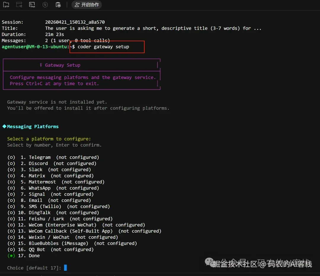 coder gateway start # 启动该 Profile 的网关