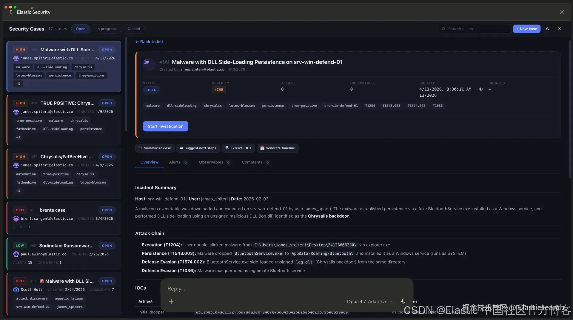 还没有 Elasticsearch 集群?可以开始免费 Elastic Cloud 试用。关于 security app 背后的构建模块,可以参考 Elastic Security Labs 上关于 Elastic Workflows 与 Agent Builder、Agent Skills 以及 Attack Discovery 的相关文章。