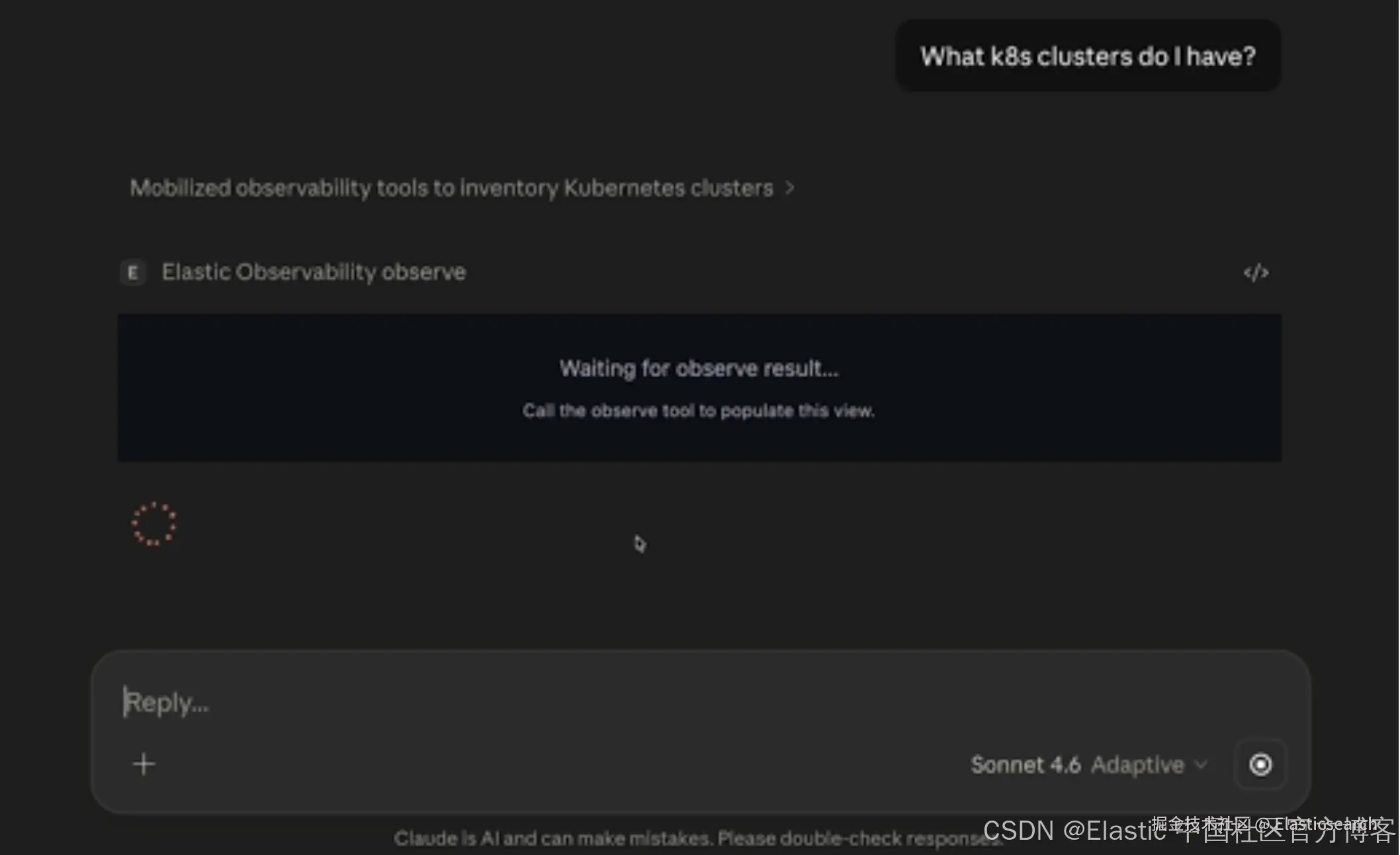第三个参考应用 Elastic Observability MCP App 解决的是同一种"形态问题"的 SRE 版本。当生产环境出现故障时,值班工程师真正需要的答案不是一张图表,而是一个由 K8s 指标、APM 拓扑、机器学习异常检测和风险评估拼接而成的诊断结果。