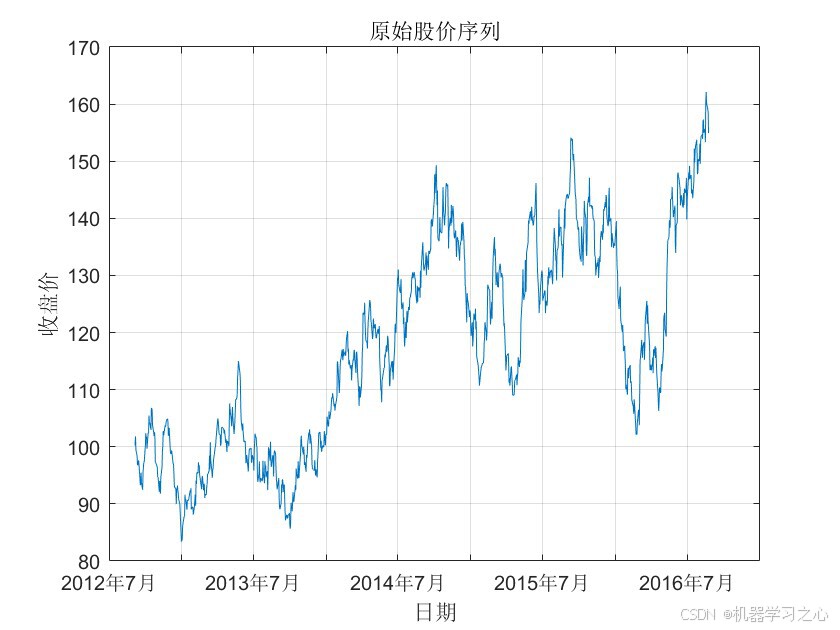 - 读取股票日线数据(日期、成交量、开盘价、最高价、最低价、收盘价),按8:2划分训练集与测试集;