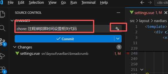 - 点击输入框上方的 ✨ Generate Commit Message 图标