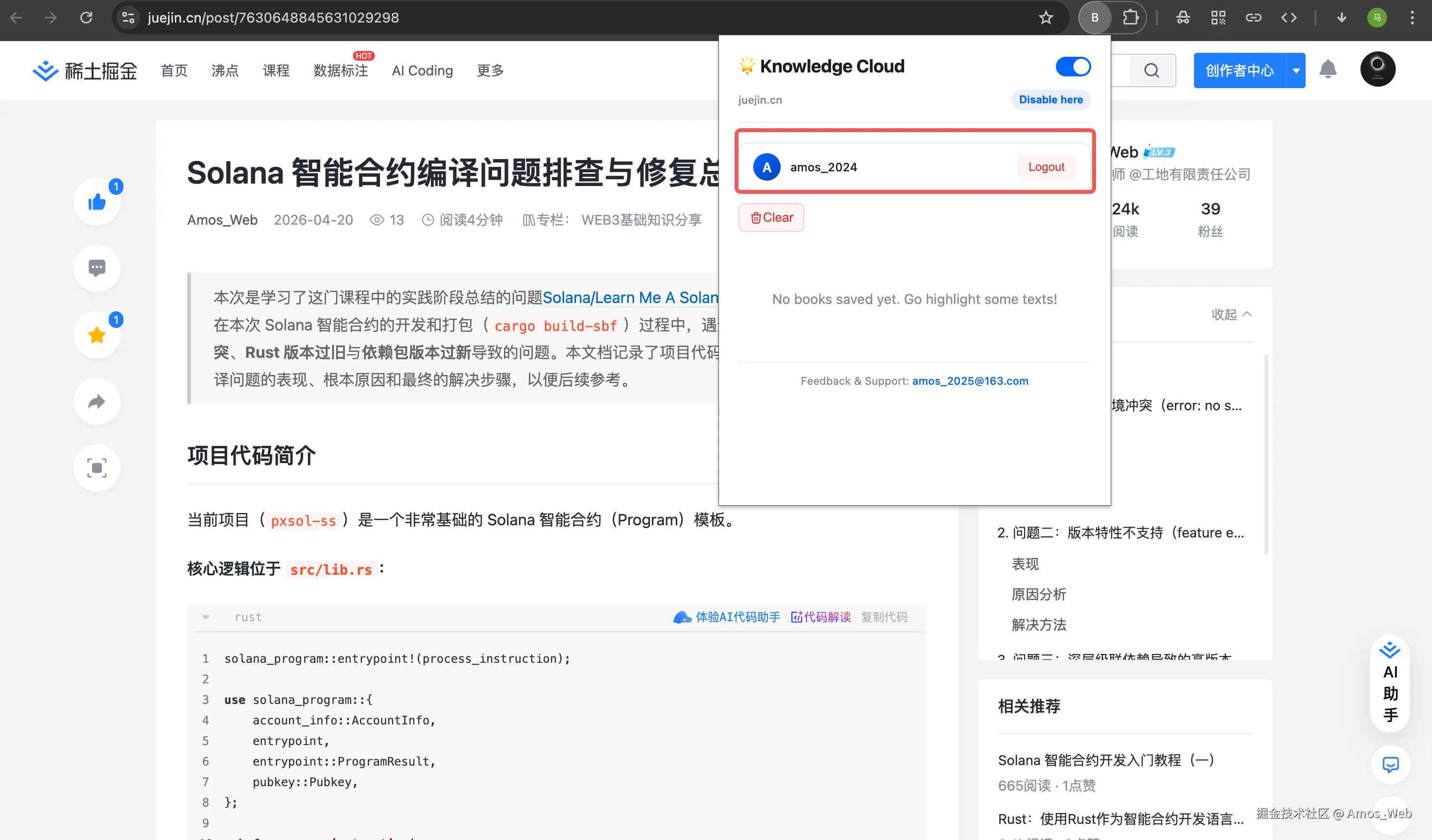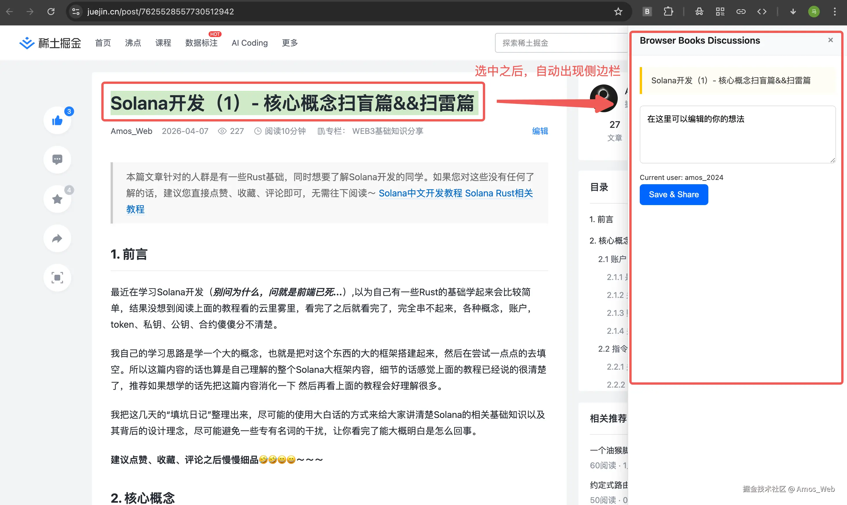 作为一名正在努力转型中的开发者,每天要在浏览器里阅读大量的技术博客、官方文档和深度的源码解读。但常常会遇到一个痛点: 看完就忘,想回顾时又找不到当初引发共鸣的那段话,发现书签里面收藏了大量的网站地址,但又忘记了每个网站中到底有哪些吸引自己的点。