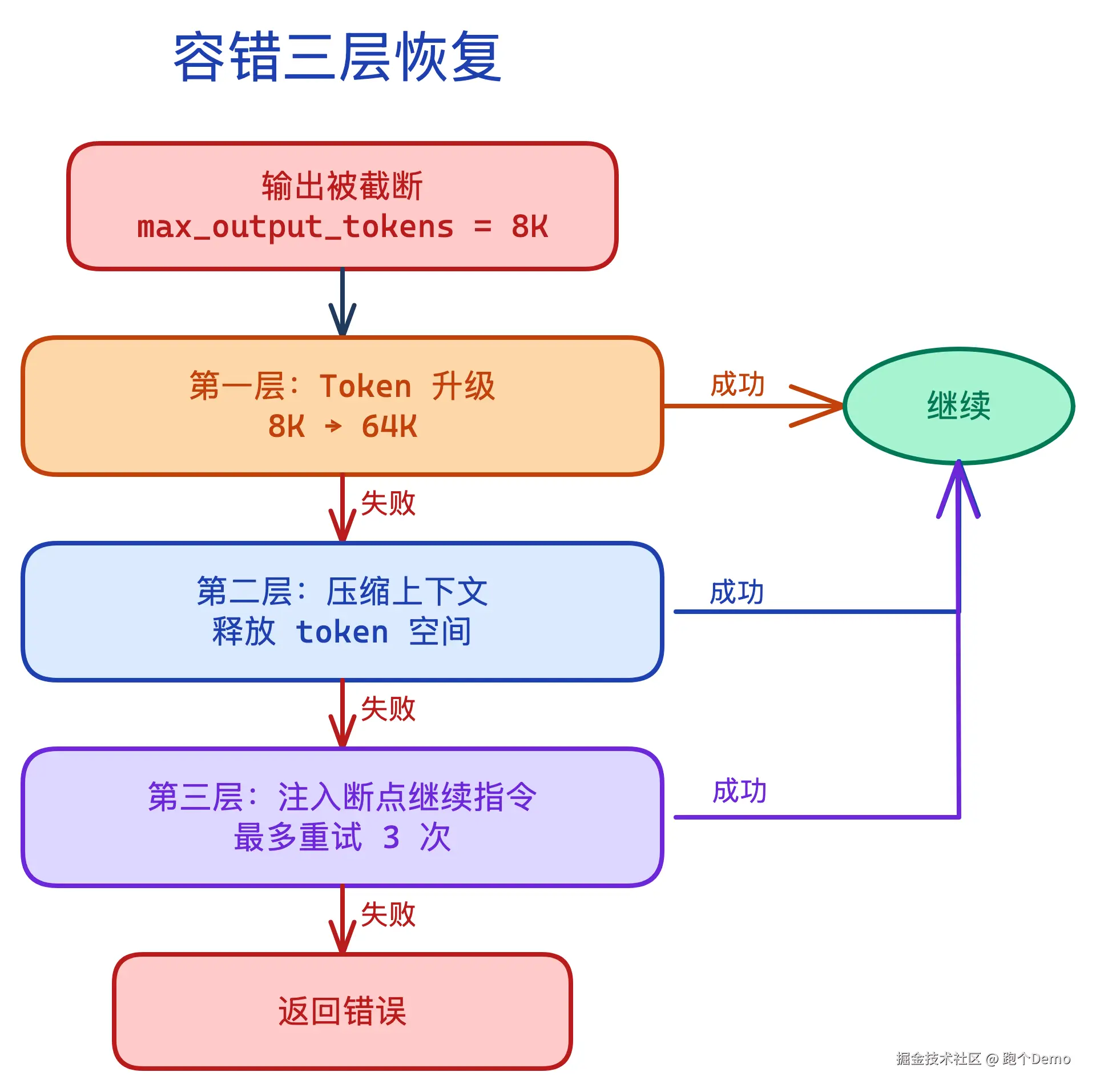 | 失败也是主路径 | 三层恢复、fallback model、reactive compact | 第 5 章:容错三层恢复 |
