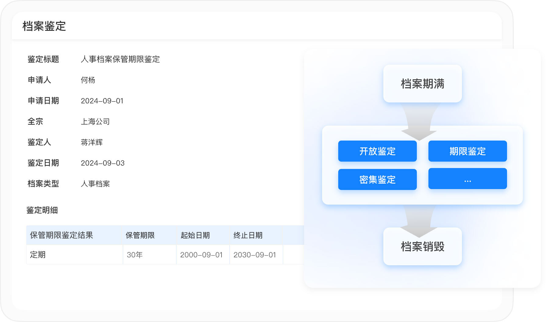 - 对即将到期、需要鉴定、需要销毁的档案进行智能预警