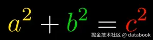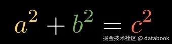 比如勾股定理 <math xmlns="http://www.w3.org/1998/Math/MathML"> a 2 + b 2 = c 2 a^2 + b^2 = c^2 </math>a2+b2=c2,我们可能想把 <math xmlns="http://www.w3.org/1998/Math/MathML"> a 2 a^2 </math>a2 标成黄色 , <math xmlns="http://www.w3.org/1998/Math/MathML"> b 2 b^2 </math>b2 标成绿色 , <math xmlns="http://www.w3.org/1998/Math/MathML"> c 2 c^2 </math>c2 标成红色,以便观众可以直观地理解对应关系。