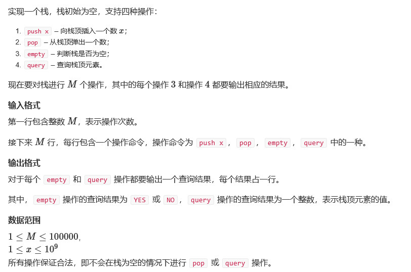 数组模拟栈的思路非常简单:用一个数组 stk[] 存储数据,用一个变量 tt 标记当前栈顶的下标,所有操作只操作 tt 的位置。