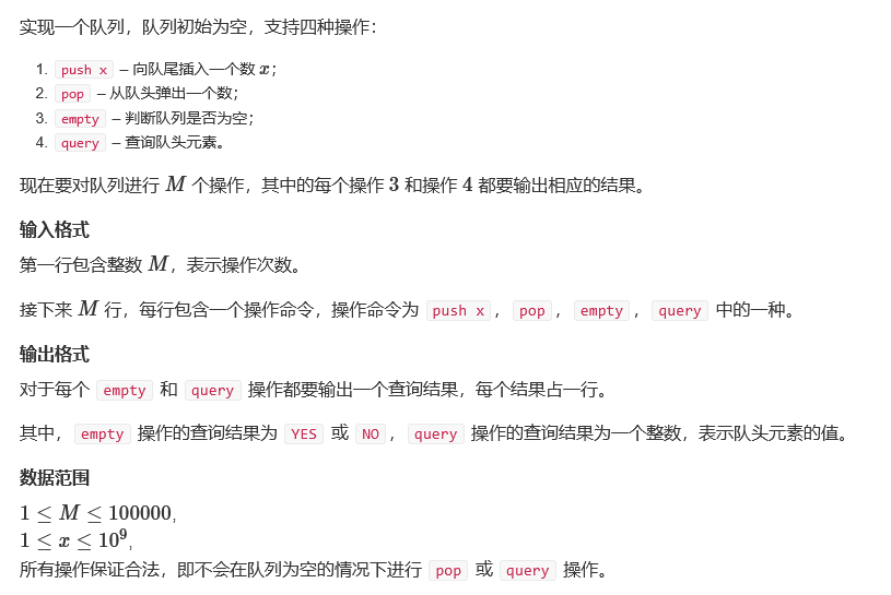 核心思路:用数组 q[] 存储数据,用 head 标记队头下标,tt 标记队尾。
