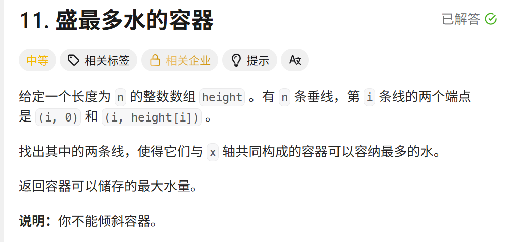 面积 = 高度(两指针中较小值)× 宽度(指针间距)。