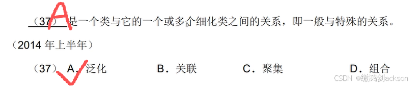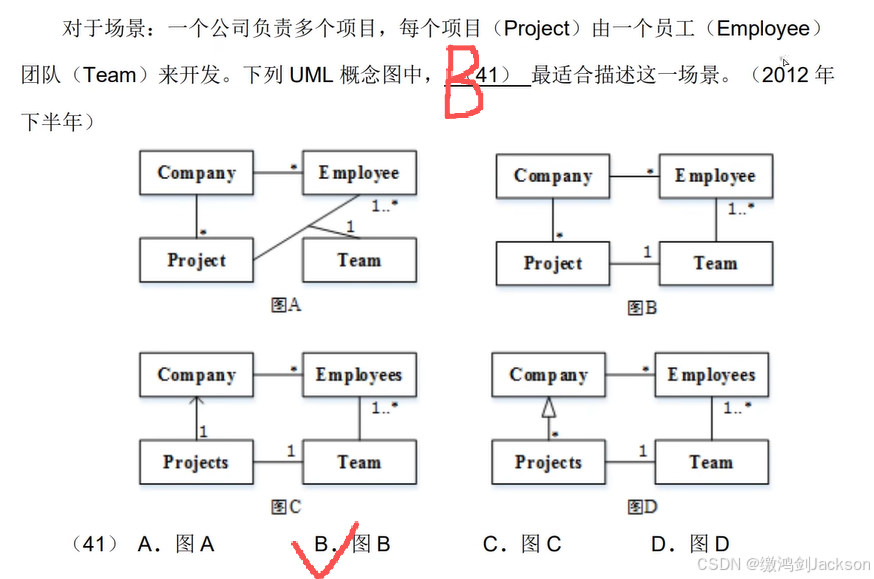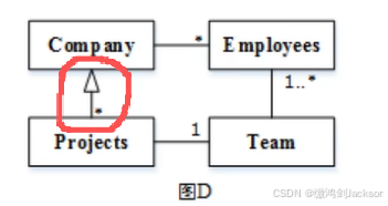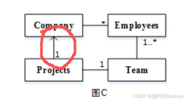 这个箭头错了,这个箭头是泛化的意思(即:继承的逆过程),但是公司和项目也不是父子关系(一般和特殊),哪来的泛化之谈?故该选项错了。