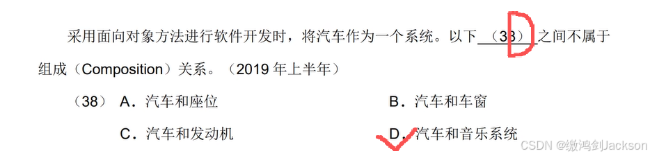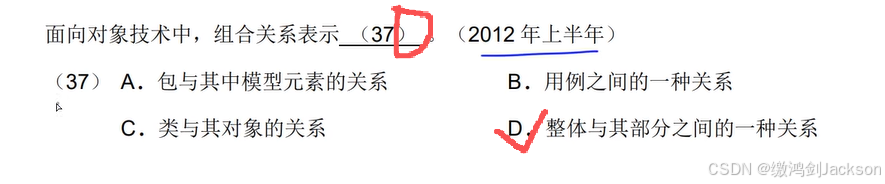 按理说汽车的座位、发动机、车窗都能单独拆下来,但是题目说了,"将汽车作为一个系统",因此就不能拆下来了,故属于组合关系(大脑和人体的关系了)。