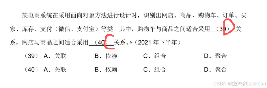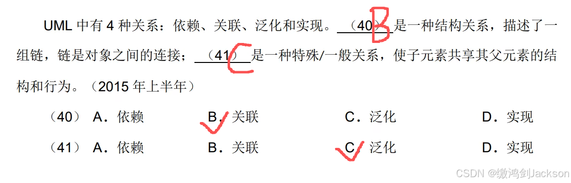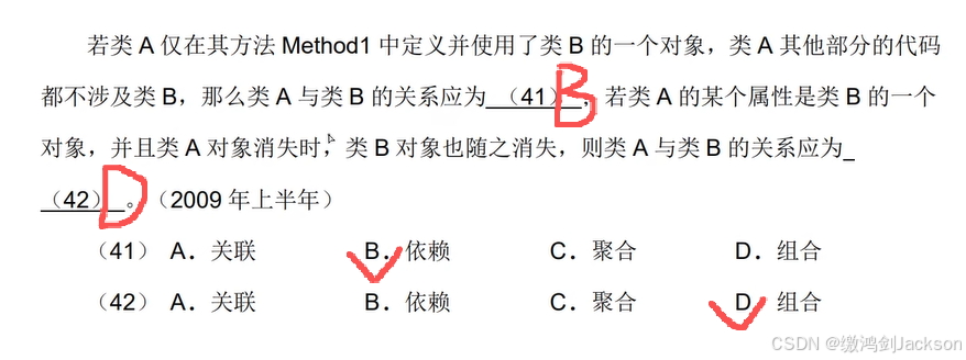 - 第一空:你A都用到人家标准类库的东西了,这不就是依赖人家么。故第一空选A。