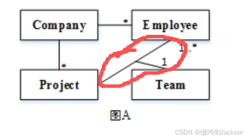 这条线错了,因为项目由团队开发,不能直接关联到员工,这属于越级了,所以错了。
