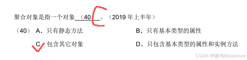 而只有C强调的是整体与部分的关系,"一个对象包含其他对象",则该对象是整体,其他对象是部分。当该对象消亡时,不影响其他对象啊,故属于聚合。