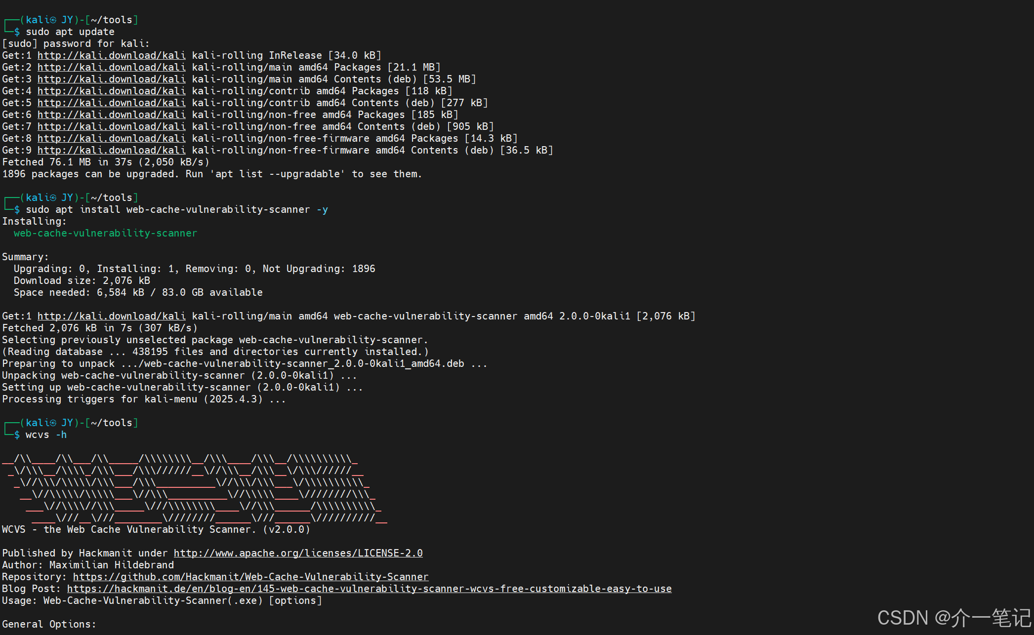 WCVS能够高效地扫描Web应用,揪出可能存在的缓存漏洞。其官方地址为:https://github.com/Hackmanit/Web-Cache-Vulnerability-Scanner 。在Kali环境下,安装步骤如下: