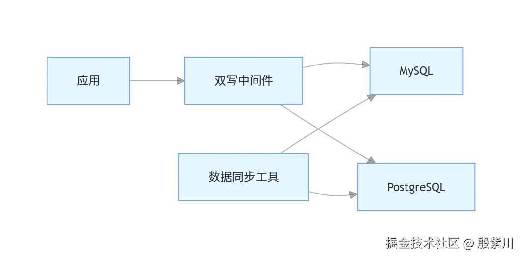 双写中间件负责同时写入两个数据库,数据同步工具负责保持两个数据库的数据一致性。在迁移完成后,可以逐步切换到新的数据库。