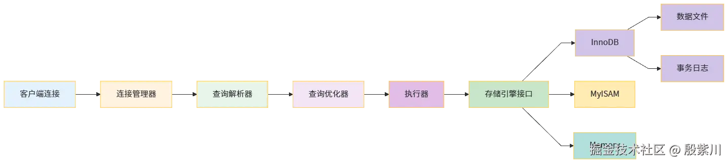 MySQL采用插件式存储引擎架构,这是它最显著的特点。服务器层负责连接管理、查询解析、优化、缓存以及内置函数等通用功能,而数据的存储和提取则由不同的存储引擎实现。这种架构使得MySQL具有极高的灵活性,用户可以根据业务需求选择不同的存储引擎。