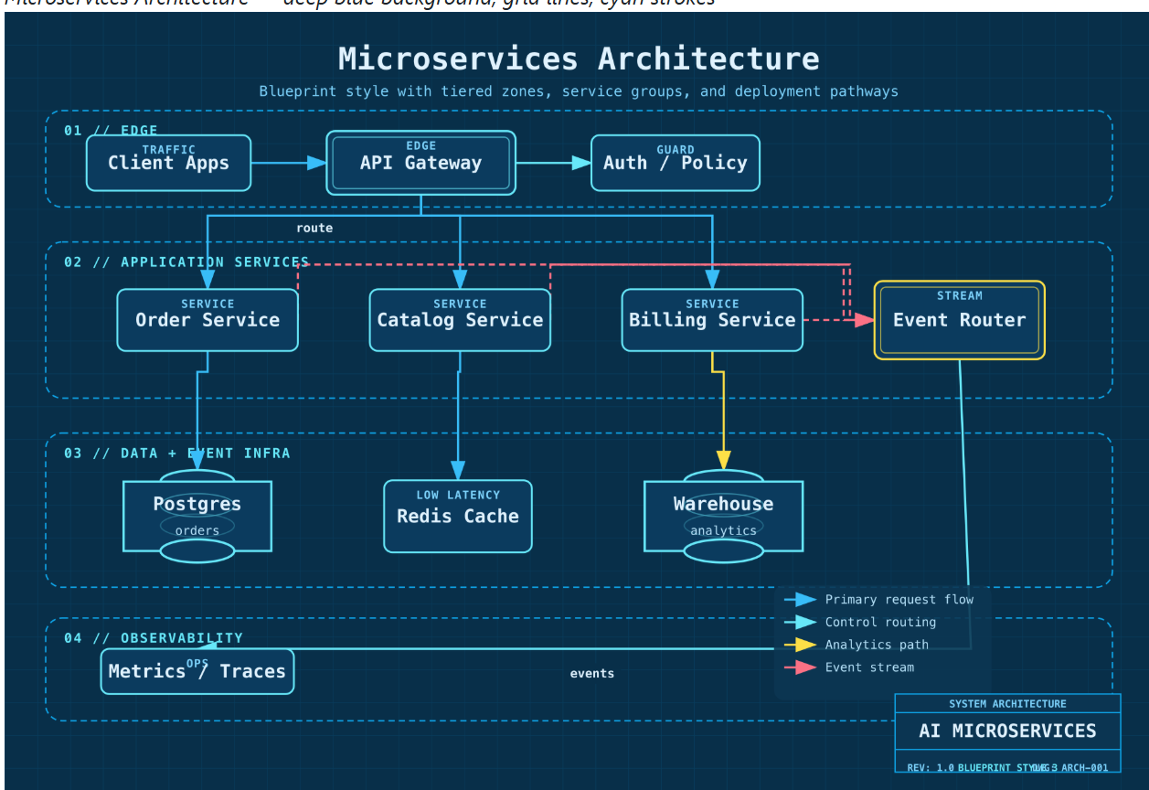 这个词汇表不仅仅是装饰性的。它将语义意义编码为视觉形式。当你在Fireworks Tech Graph图表中看到六边形时,你立即知道它代表一个活跃的控制器或编排器。虚线边框矩形表示短暂的短期存储。圆柱体表示持久的长期存储。这种一致性使得图表在不同项目和团队之间立即可读。