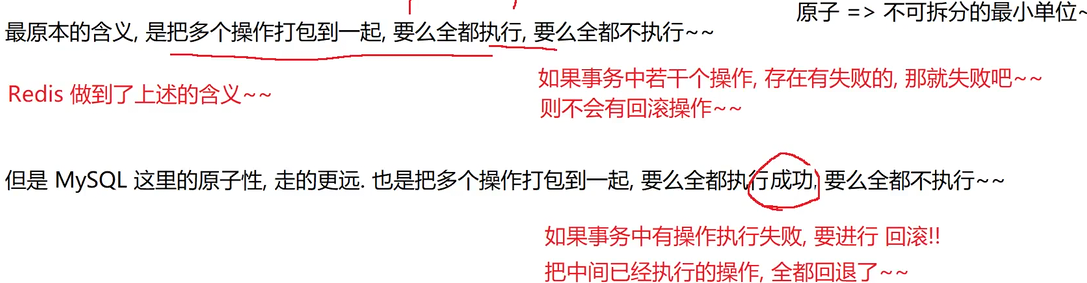但是注意体会 Redis 的事务和 MySQL 事务的区别: