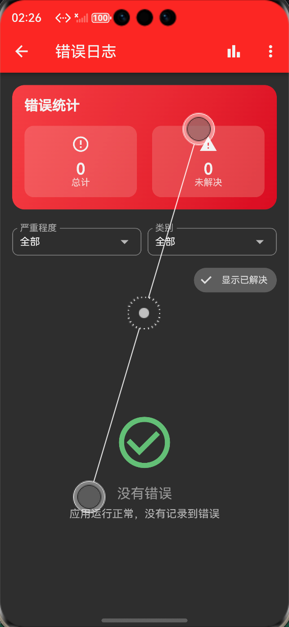 错误日志记录正常,所有异常均能持久化存储到本地,应用重启后不丢失