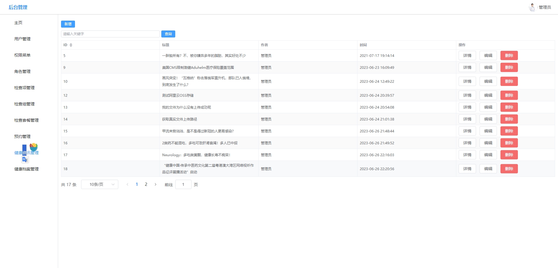 - 富文本编辑器:健康资讯支持图文混排编辑