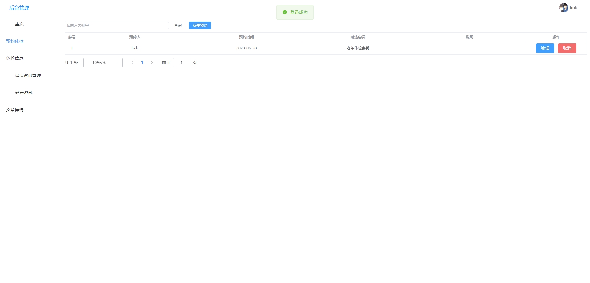 本项目成功实现了一个功能完善的健康管理平台,涵盖了用户管理、权限控制、体检预约、健康档案、体检报告等核心功能。系统采用主流的前后端分离架构,技术选型合理,代码结构清晰,具有良好的可维护性和扩展性。