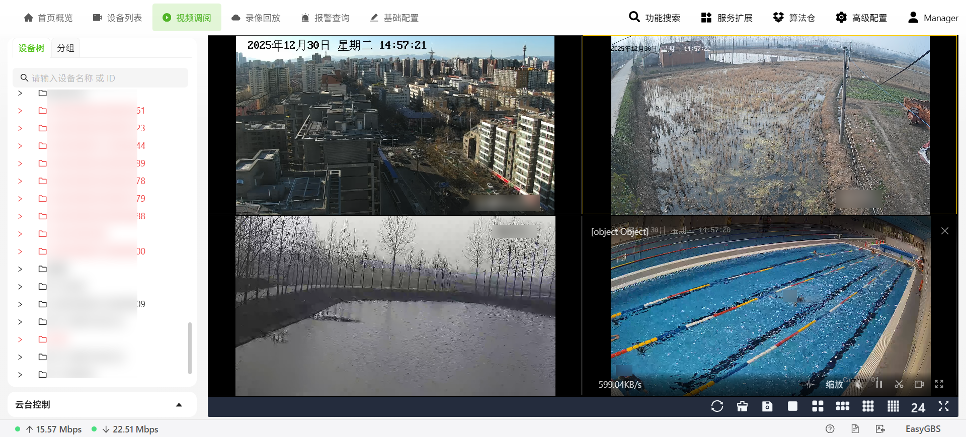 GB28181作为公共安全视频联网的核心标准,解决了金融机构多品牌、多区域设备的统一接入难题。EasyGBS全面支持GB28181协议,可无缝接入营业大厅、自助ATM、档案室等全场景监控设备,实现海量设备的统一注册、实时预览、录像回放、云台控制与集中管理。平台支持RTSP、HLS、FLV等多协议输出,适配指挥中心大屏、PC端、移动端等多终端观看,满足总行远程巡检、分行实时管控、网点本地值守的多元需求,让视频资源高效流转、按需调用。