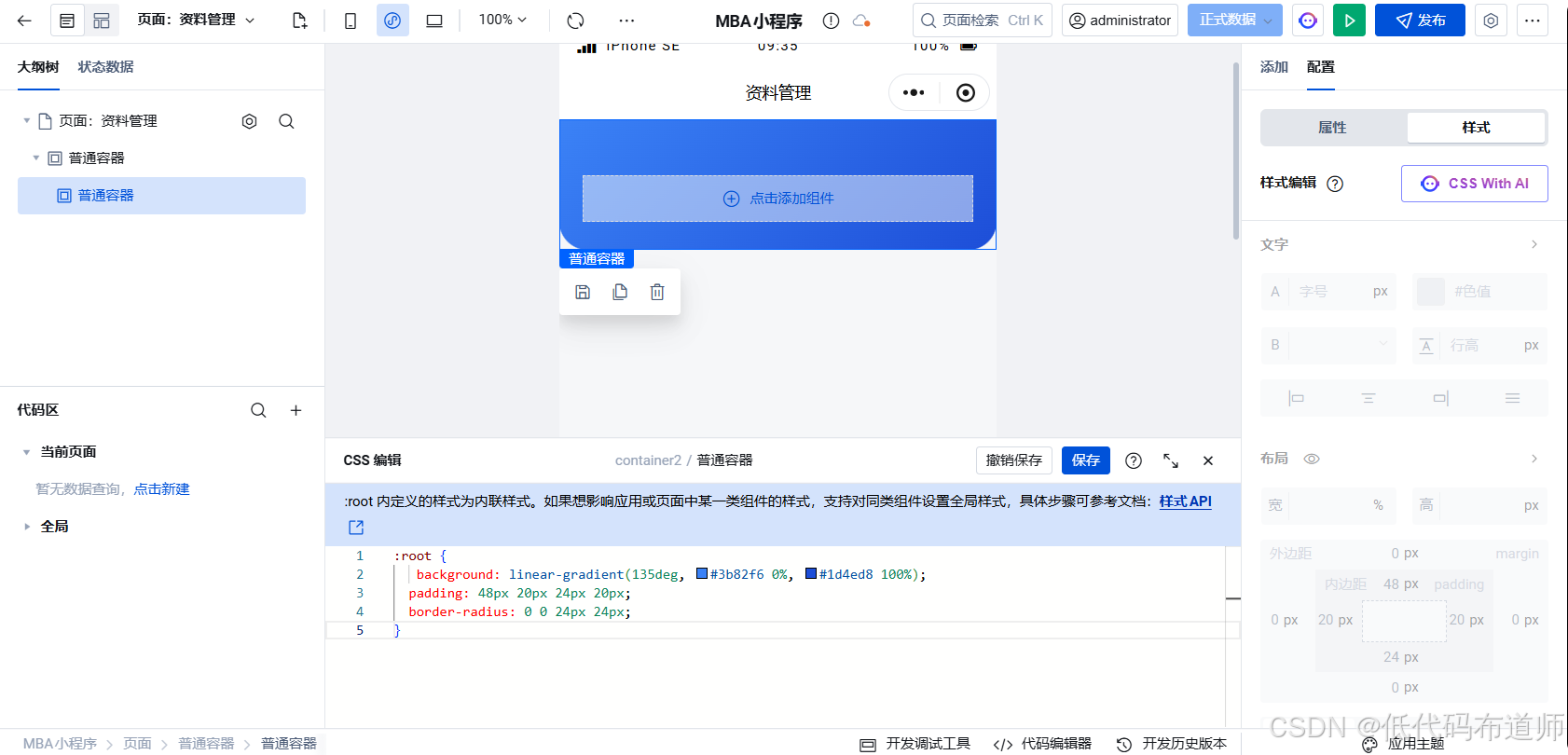 里边添加文本组件,设置文本颜色、字号和加粗的效果