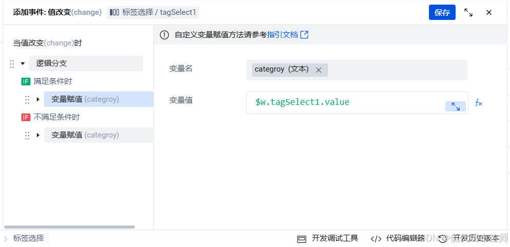 配置值改变事件,当选择全部时候给变量赋空值,否则赋组件的值