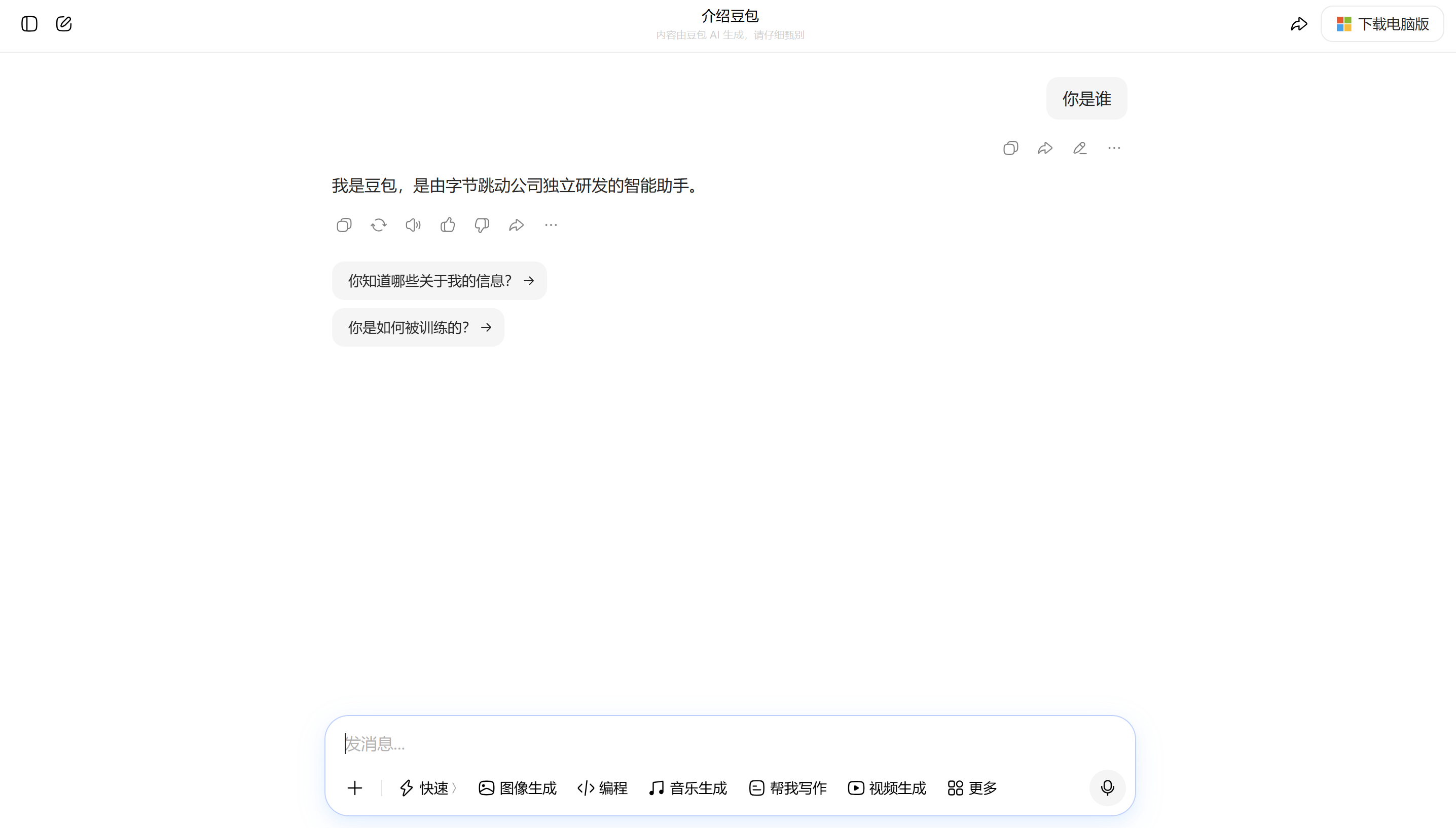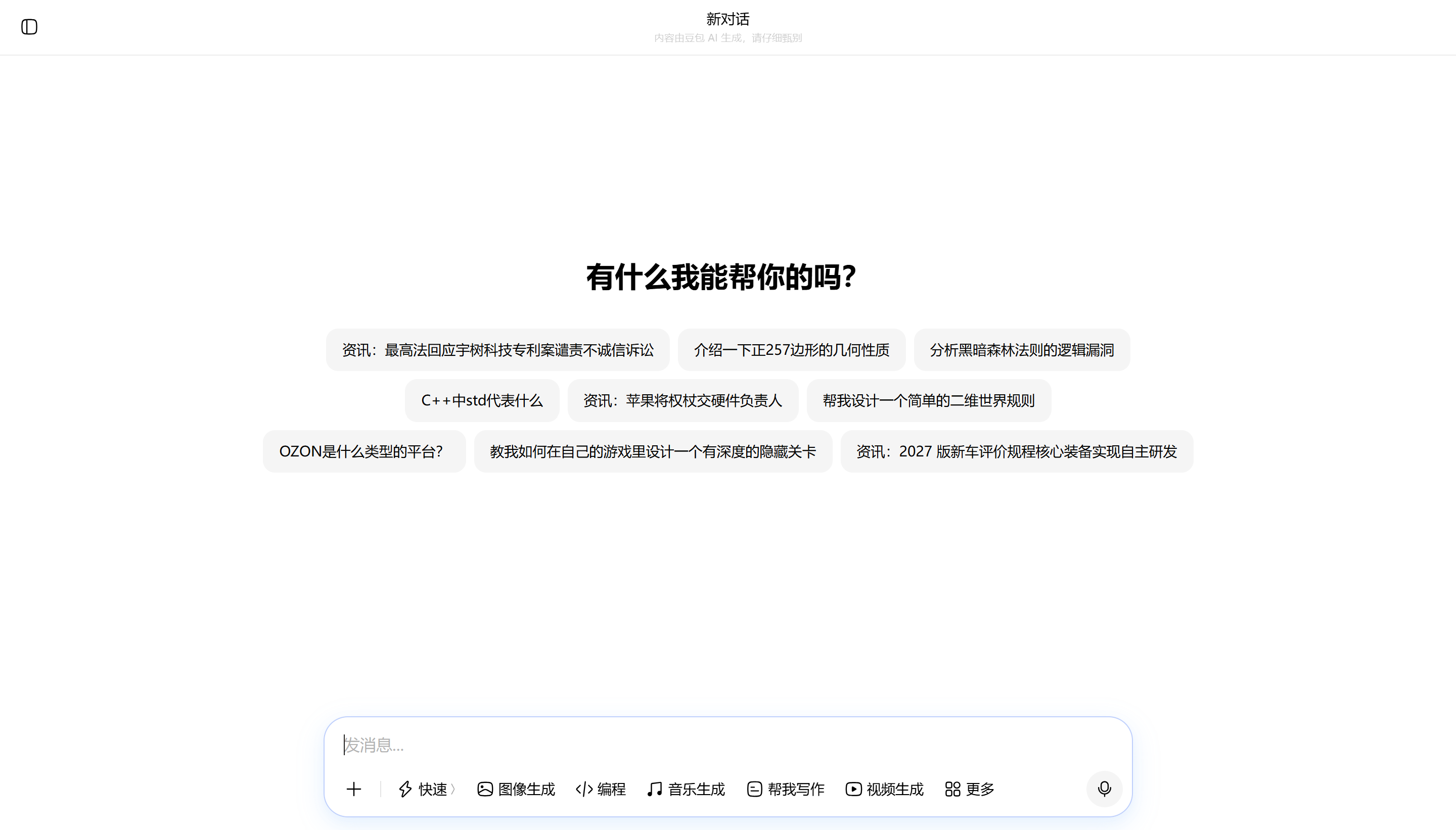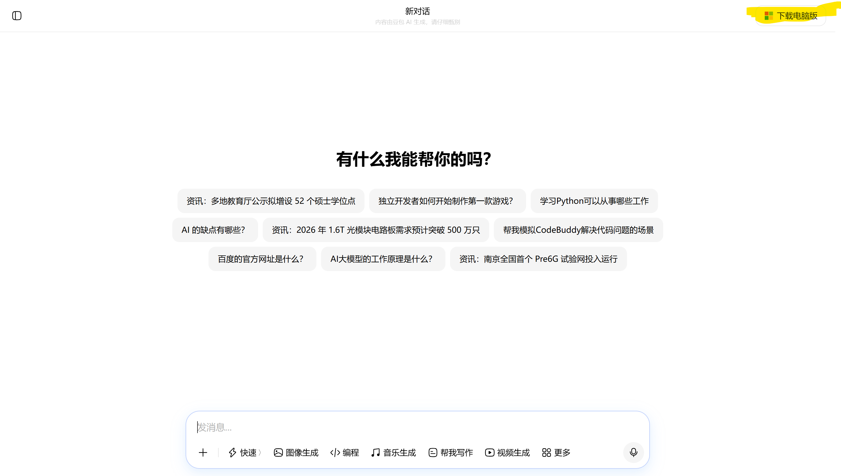 这个很简单,首先打开豆包网页版,然后会进入这个页面: