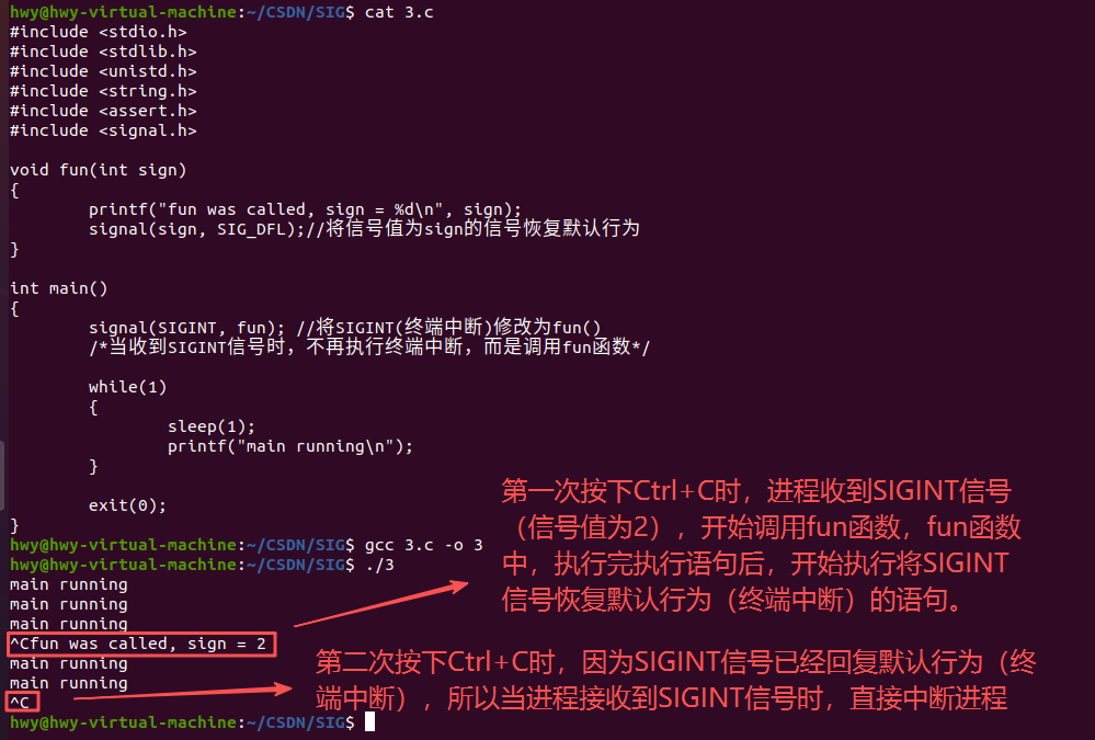 二、修改信号的相应方式 signal()