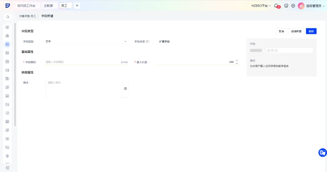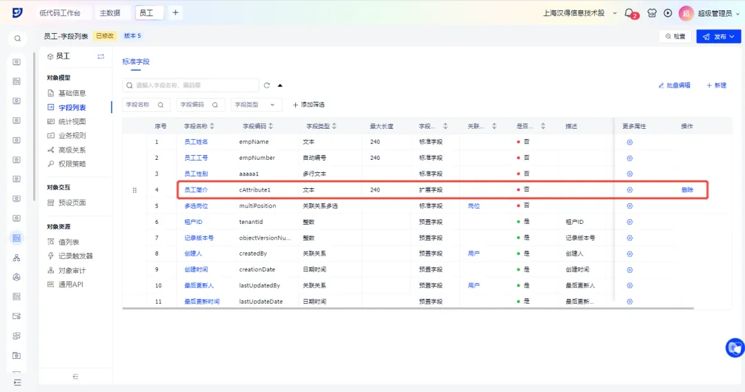 但某些租户可能存在特殊需求,例如需要增加"用户简介""员工标签"等个性化字段。如果直接修改标准对象,会影响所有租户,也会增加平台维护成本 。