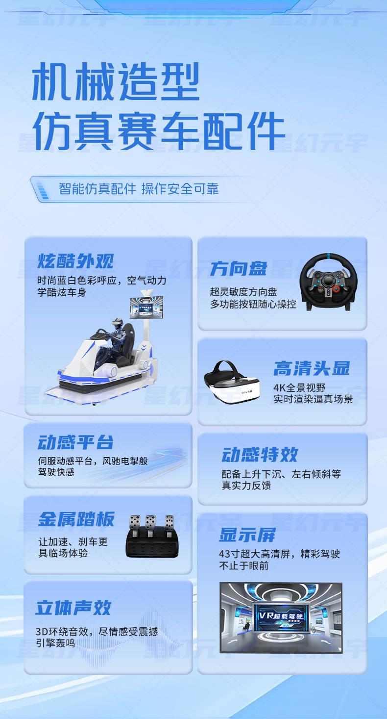 VR科普赛车设备整体结构紧凑,占地空间小,操作流程简单,适用于交通安全体验馆、科普教育基地、校园、商场、科技馆等多种场所。既可以作为长期固定展项,也可以用于流动科普活动,让交通安全教育覆盖更多人群。
