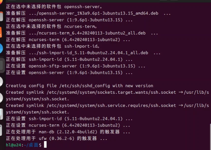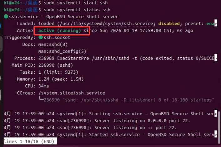 运行结果如下,说明ssh已经安装成功,并且启动成功