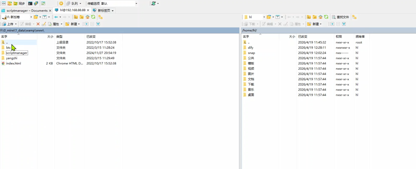 至此,可以使用WinScp方便的给Ubuntu互传文件