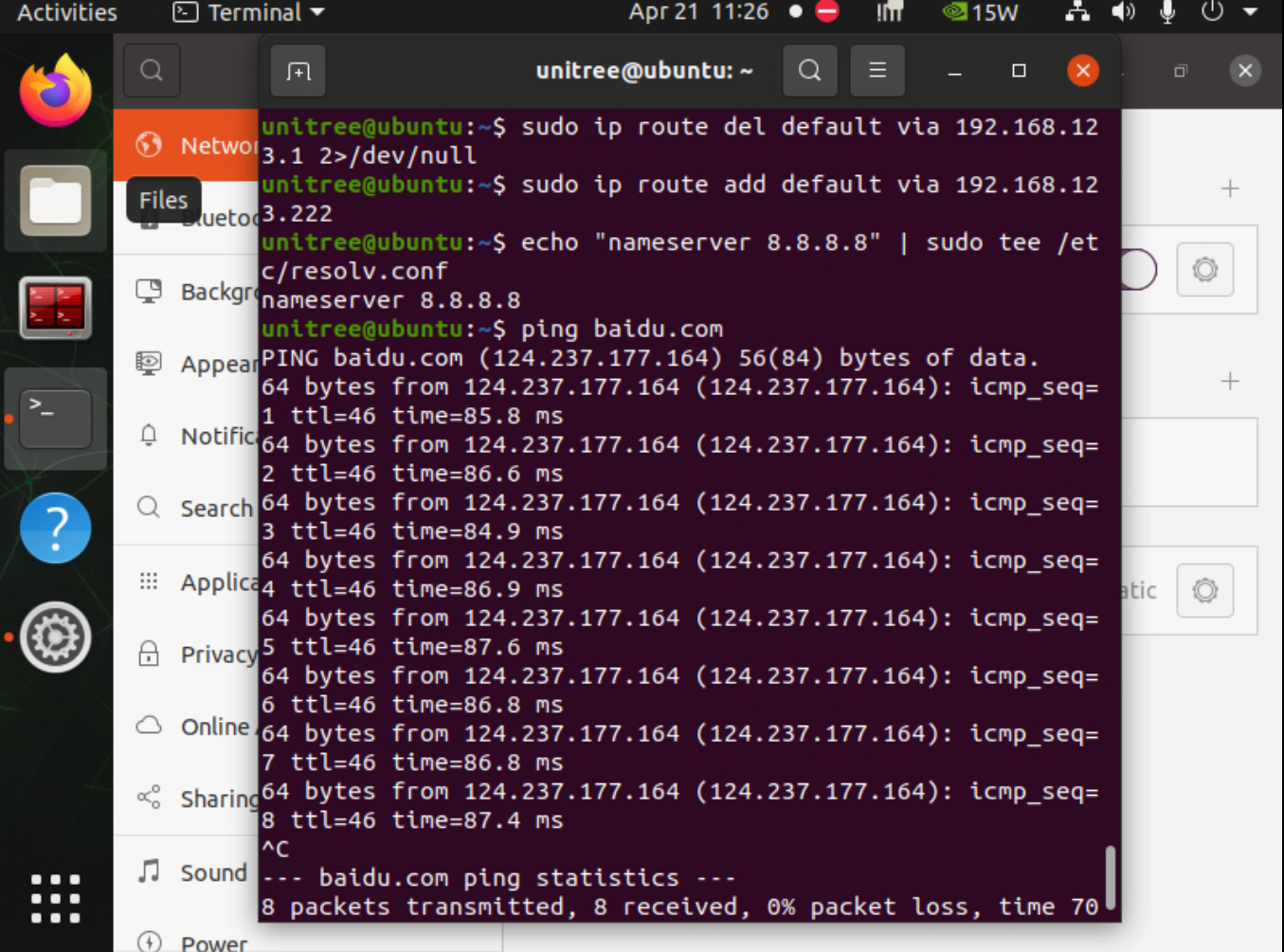 💡 提示:机器狗重启后,网关和 DNS 都会恢复原状,如需再次上网,只需重新执行本部分三条命令。