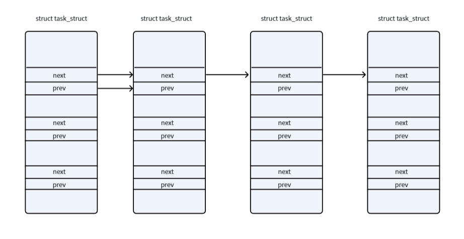 struct task_struct *,即可通过成员指针访问整个结构体。在task_struct中有很多next、prev的节点组合,而各个task_struct再进行连接