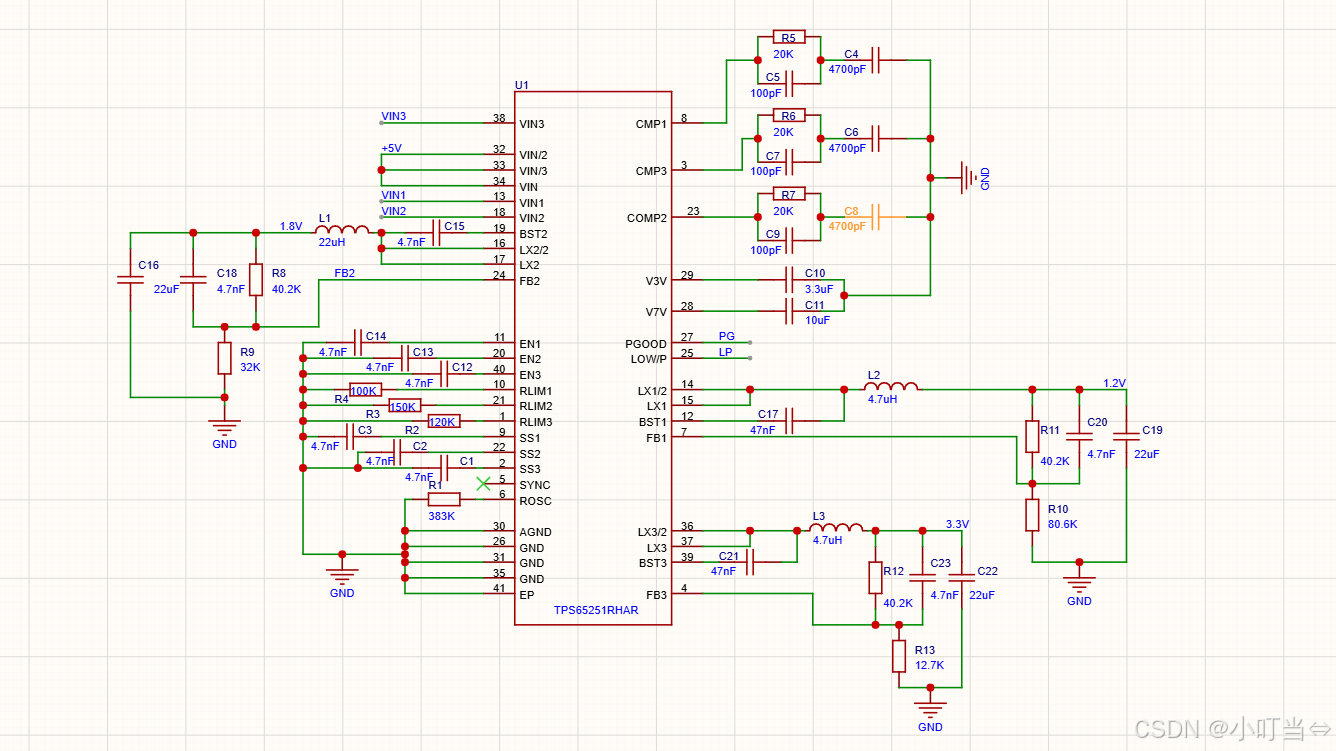 补偿、ROSC 等敏感小信号元件尽量靠近芯片,走线短。