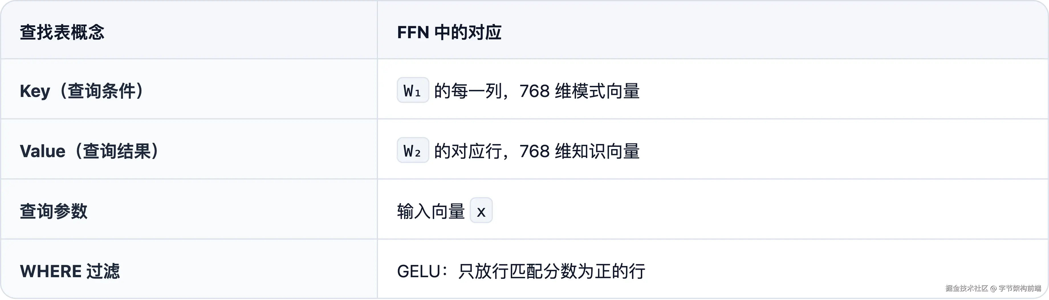 但这张矩阵不是随机的,它是训练过程收敛后的结果。第 4881 行(" France")和第 6342 行(" Paris")在 768 维空间中的几何关系,恰好编码了"法国-首都-巴黎"这一知识。回到我们的追踪对象:5 个 Token ID 变成 5 个 768 维向量后," France" 和 " capital" 不再是差了 1742 的两个整数,它们之间的方向和距离携带着语义信息。